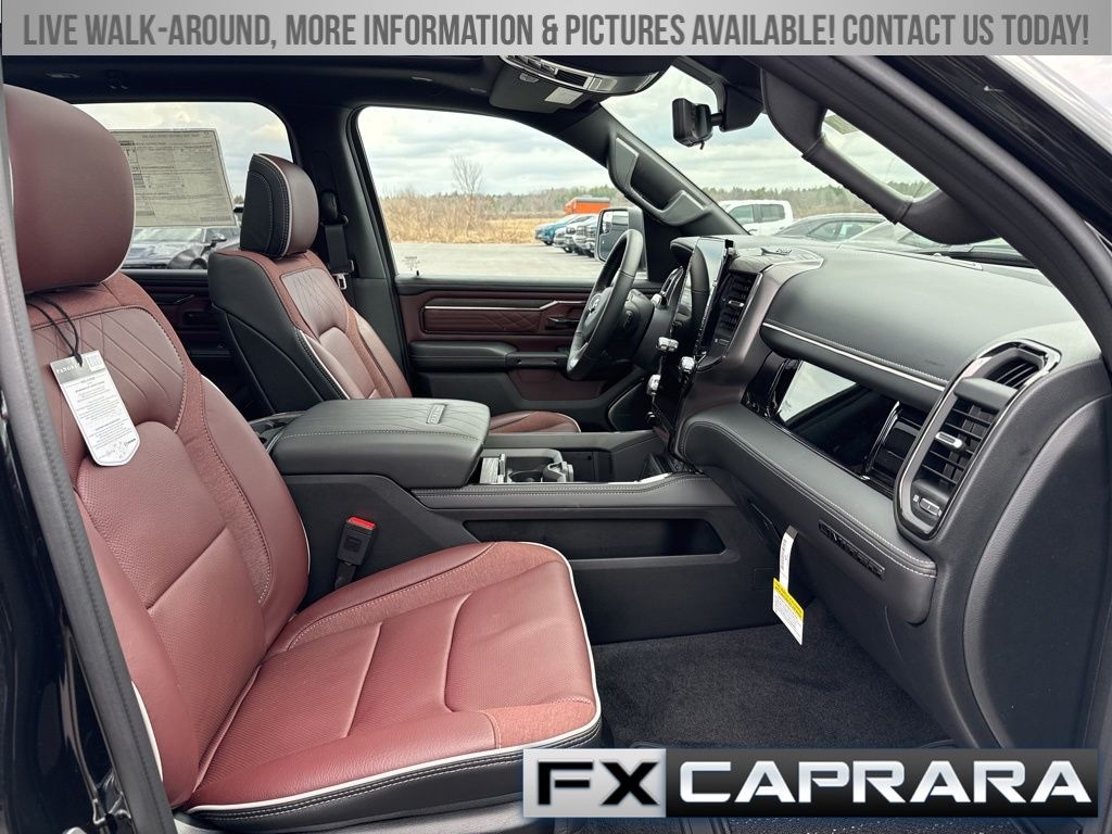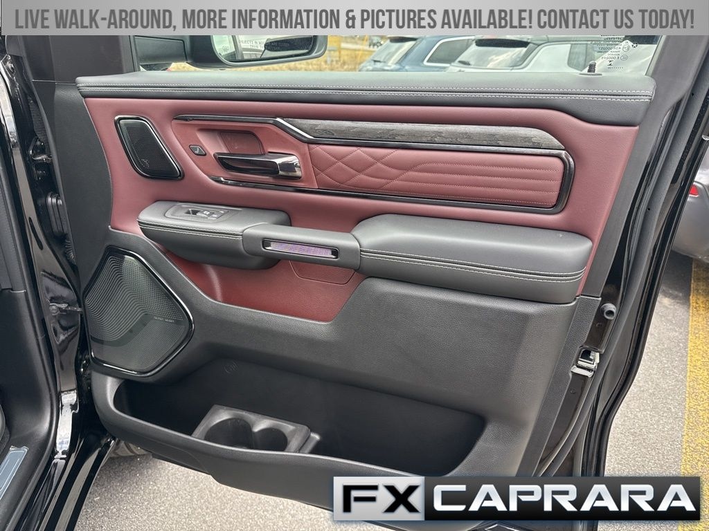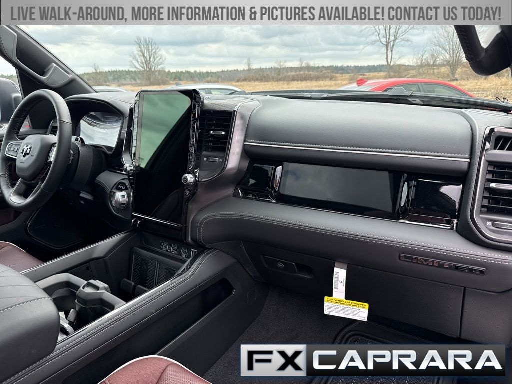 12-Way/1-Way Trailer Connector, 14.4" Touchscreen Display, 19 Speakers, 240 Amp Alternator, 3.92 Rear Axle Ratio, 4-Wheel Disc Brakes, 4G LTE Wi-Fi Hot Spot, ABS brakes, Accent Color Door Handles, Accent Color Premium Power Mirrors, Accent Color Tailgate Handle, Active Noise Control System, Adjustable pedals, Air Conditioning, Alloy wheels, AM/FM radio, Apple CarPlay, Apple CarPlay/Android Auto, Audio memory, Auto High-beam Headlights, Auto Power-Folding Mirrors, Auto-dimming door mirrors, Auto-Dimming Exterior Driver Mirror, Auto-dimming Rear-View mirror, Auto-leveling suspension, Automatic temperature control, Bed Utility Group, Black Day Light Opening Moldings, Black Exterior Truck Badging, Black Grille Surround Texture 7 Black, Black Headlamp Bezels, Black Painted Exterior Mirrors Caps, Black Tail Lamp Bezels, Body Color Front Bumper, Body Color Rear Bumper with Step Pads, Bodyside moldings, Brake assist, Bumpers: chrome, Chrome Exterior Mirrors, Compass, Connected Travel and Traffic Services, Connectivity - US/Canada, Convex Wide-Angle Exterior Mirror Insert, Delay-off headlights, Disassociated Touchscreen Display, Dome Dual LED Reading Lamp, Driver door bin, Driver vanity mirror, Drowsy Driver Detection, Dual Exhaust with Black Tips, Dual front impact airbags, Dual front side impact airbags, Dual-Pane Panoramic Sunroof, Electronic Stability Control, Evasive Steer Assist, Exterior 115V AC Outlet, Exterior Mirrors Courtesy Lamps, Exterior Mirrors with Heating Element, Exterior Mirrors with Memory, Exterior Mirrors with Supplemental Signals, Exterior Parking Camera Rear, Front anti-roll bar, Front Bucket Seats, Front Center Armrest w/Storage, Front dual zone A/C, Front fog lights, Front License Plate Bracket, Front reading lights, Front wheel independent suspension, Fully automatic headlights, Garage door transmitter, Genuine wood console insert, Genuine wood dashboard insert, Genuine wood door panel insert, Global Telematics Box Module, Google Android Auto, GPS Antenna Input, GPS Navigation, Hands-Free Active Driving Assist System, harman/kardon® Speakers, HD Radio, Heads-Up Display, Heated door mirrors, Heated front seats, Heated rear seats, Heated steering wheel, Illuminated entry, Integrated Center Stack Radio, Integrated Voice Command with Bluetooth, Intersection Collision Assist System, Leather steering wheel, LED CHMSL Lamp, LED Dome/Reading Lamp, Limited Level A Equipment Group, Low tire pressure warning, Manufacturer's Statement of Origin, Memory seat, MOPAR 4 Adjustable Cargo Tie-Down Hooks, MyFlexCare Service Plan, Navigation System, Night Edition, Occupant sensing airbag, Outside temperature display, Overhead airbag, Overhead console, Panic alarm, Passenger door bin, Passenger vanity mirror, Pedal memory, Pirelli Brand Tires, Power door mirrors, Power driver seat, Power passenger seat, Power steering, Power windows, Premium Quilted Leather Bucket Seats, Quick Order Package 22M Limited, Radio data system, Radio: Uconnect 5 Nav with 14.4" Display, Radio: Uconnect 5 Navigation with 12.0" Display, Rain sensing wipers, RAM Grille Badge - Black, RamBox Cargo Management System, Rear anti-roll bar, Rear reading lights, Rear seat center armrest, Rear step bumper, Rear window defroster, Remote keyless entry, Security system, SiriusXM Radio Service, SiriusXM with 360L, Smartphone as a Key Capable, Speed control, Split folding rear seat, Sport Performance Hood, Steering wheel mounted audio controls, Surround View Camera System, Tachometer