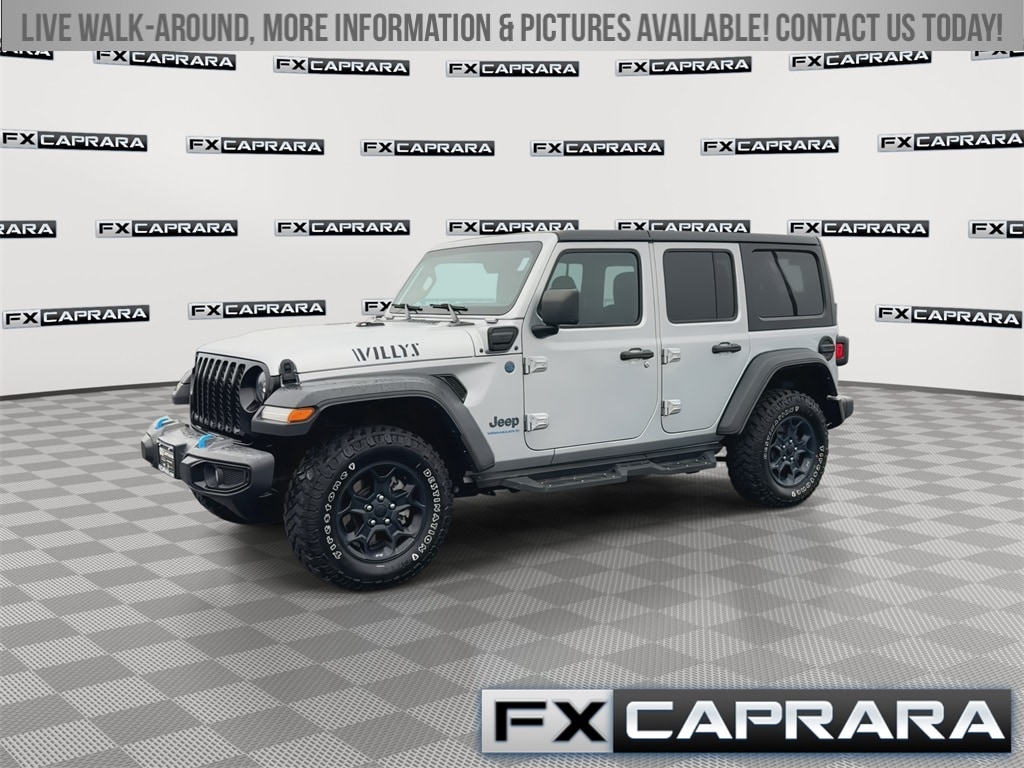 2.0L I4 DOHC, 1-Year SiriusXM Guardian Trial, 3.73 Rear Axle Ratio, 4-Wheel Disc Brakes, 4G LTE Wi-Fi Hot Spot, 4xe 4-Wheel Drive Swing Gate Decal, 5-Year SiriusXM Traffic Service, 5-Year SiriusXM Travel Link Service, 700 Amp Maintenance Free Battery, 8.4" Radio Group, 8.4" Touchscreen Display, 9 Speakers, 97 MPH Vehicle Max Speed Calibration, ABS brakes, Air Conditioning, Alloy wheels, AM/FM radio: SiriusXM, Anti-Spin Differential Rear Axle, Apple CarPlay, Apple CarPlay/Android Auto, Auto-Dimming Rear-View Mirror, Automatic temperature control, Auxiliary Switches, Black 3-Piece Hard Top, Black Grille, Brake assist, Cloth Low-Back Bucket Seats, Cold Weather Group, Compass, Convenience Group, Delay-off headlights, Driver door bin, Driver vanity mirror, Dual front impact airbags, Dual front side impact airbags, Electronic Stability Control, Emergency communication system: SiriusXM Guardian, Emergency/Assistance Call, For Details, Visit DriveUconnect.com, Front anti-roll bar, Front Bucket Seats, Front Center Armrest w/Storage, Front dual zone A/C, Front fog lights, Front LED Fog Lamps, Front License Plate Bracket, Front reading lights, Fully automatic headlights, Google Android Auto, GPS Antenna Input, GPS Navigation, HD Radio, Heated door mirrors, Illuminated entry, Integrated Center Stack Radio, Integrated roll-over protection, Integrated Voice Command w/Bluetooth, Jeep Trail Rated Kit, LED Headlamp & Fog Lamp Group, LED Premium Reflector Headlamps, Low tire pressure warning, Molded-In-Color Fender Flares (2-Piece), MOPAR All-Weather Floor Mats, Normal Duty Suspension, Occupant sensing airbag, Off-Road Info Pages, Outside temperature display, Panic alarm, ParkView Rear Back-Up Camera, Passenger door bin, Passenger vanity mirror, Power door mirrors, Power steering, Power windows, Quick Order Package 29W Willys, Radio data system, Radio: Uconnect 4 w/7" Display, Radio: Uconnect 4C Nav w/8.4" Display, Rear anti-roll bar, Rear reading lights, Remote keyless entry, Remote Start System, Security system, SiriusXM Traffic Plus, SiriusXM Travel Link, Speed control, Split folding rear seat, Steering wheel mounted audio controls, Tachometer, Telescoping steering wheel, Tilt steering wheel, Traction control, Trailer Tow & Aux Switch Group, Trip computer, Universal Garage Door Opener, USB Host Flip, Variably intermittent wipers, Voltmeter, Wheels: 17" x 7.5" Black Aluminum, Willys, Willys 4xe Hood Decal, 2.0L I4 DOHC.