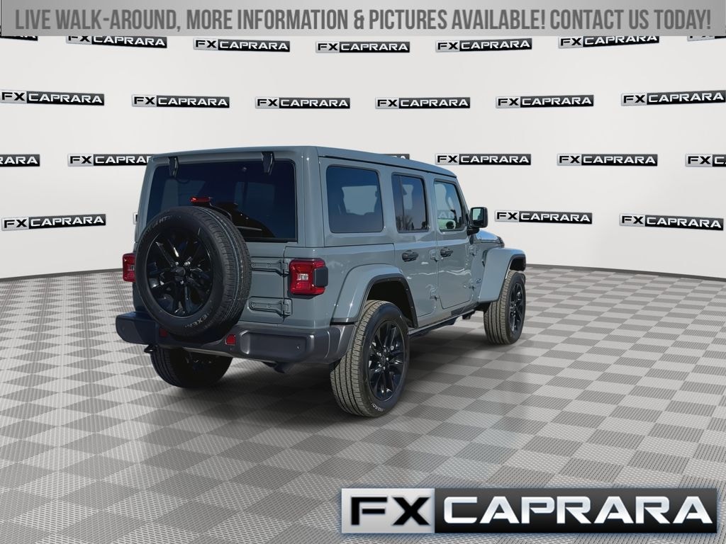 2.0L I4 DOHC, 3.73 Rear Axle Ratio, 4-Wheel Disc Brakes, 4G LTE Wi-Fi Hot Spot, 8 Speakers, ABS brakes, Air Conditioning, Alloy wheels, AM/FM radio: SiriusXM, Apple CarPlay, Apple CarPlay/Android Auto, Auto High Beam Headlamp Control, Automatic temperature control, Blind Spot & Cross Path Detection, Brake assist, Cloth Low-Back Bucket Seats, Compass, Connectivity - US/Canada, Delay-off headlights, Driver door bin, Driver vanity mirror, Dual front impact airbags, Dual front side impact airbags, Electronic Stability Control, Emergency communication system: Jeep Connect, Front anti-roll bar, Front Bucket Seats, Front Center Armrest w/Storage, Front dual zone A/C, Front fog lights, Front License Plate Bracket (DISC), Front reading lights, Fully automatic headlights, Google Android Auto, Heated door mirrors, Heated front seats, Heated steering wheel, Illuminated entry, Integrated Center Stack Radio, Integrated roll-over protection, Integrated Voice Command w/Bluetooth, Low tire pressure warning, Occupant sensing airbag, Outside temperature display, Overhead airbag, Panic alarm, ParkSense Rear Park Assist System, ParkView Rear Back-Up Camera, Passenger door bin, Passenger vanity mirror, Power door mirrors, Power steering, Power Top Quarter Window Storage Bag, Power windows, Quick Order Package 29P Sahara 4xe, Radio data system, Radio: Uconnect 5 w/12.3" Display, Rear anti-roll bar, Rear reading lights, Rear seat center armrest, Rear Window Defroster, Rear Window Wiper/Washer, Remote keyless entry, Removable Rear Quarter Windows, Safety Group, Security system, Sky 1-Touch Power Top, Speed control, Split folding rear seat, Sport Suspension, Steering wheel mounted audio controls, Tachometer, Telescoping steering wheel, Tilt steering wheel, Traction control, Trip computer, Variably intermittent wipers, Voltmeter, Wheels: 20" x 8" Painted Black Aluminum, 2.0L I4 DOHC.